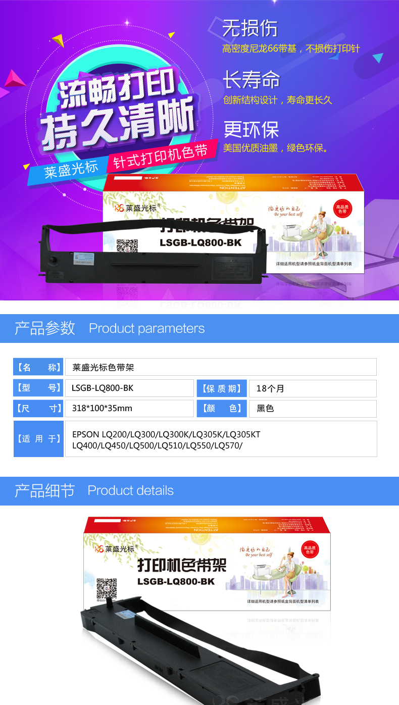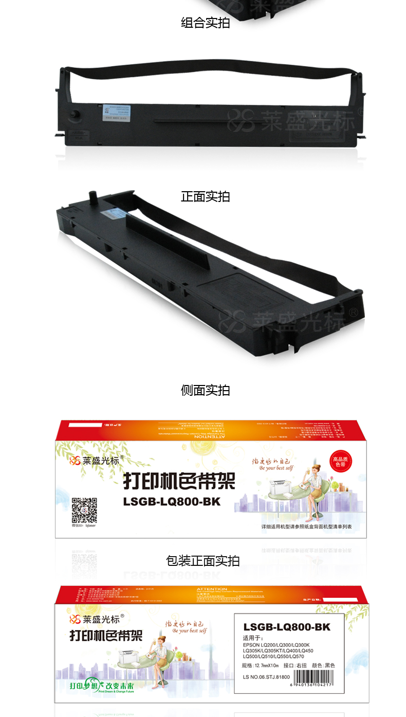 萊盛光標(biāo) LSGB-LQ800-BK 色帶架 黑色 適用:EPSON LQ200/LQ300/LQ300K/LQ305K/LQ305KT/LQ400 單位:支