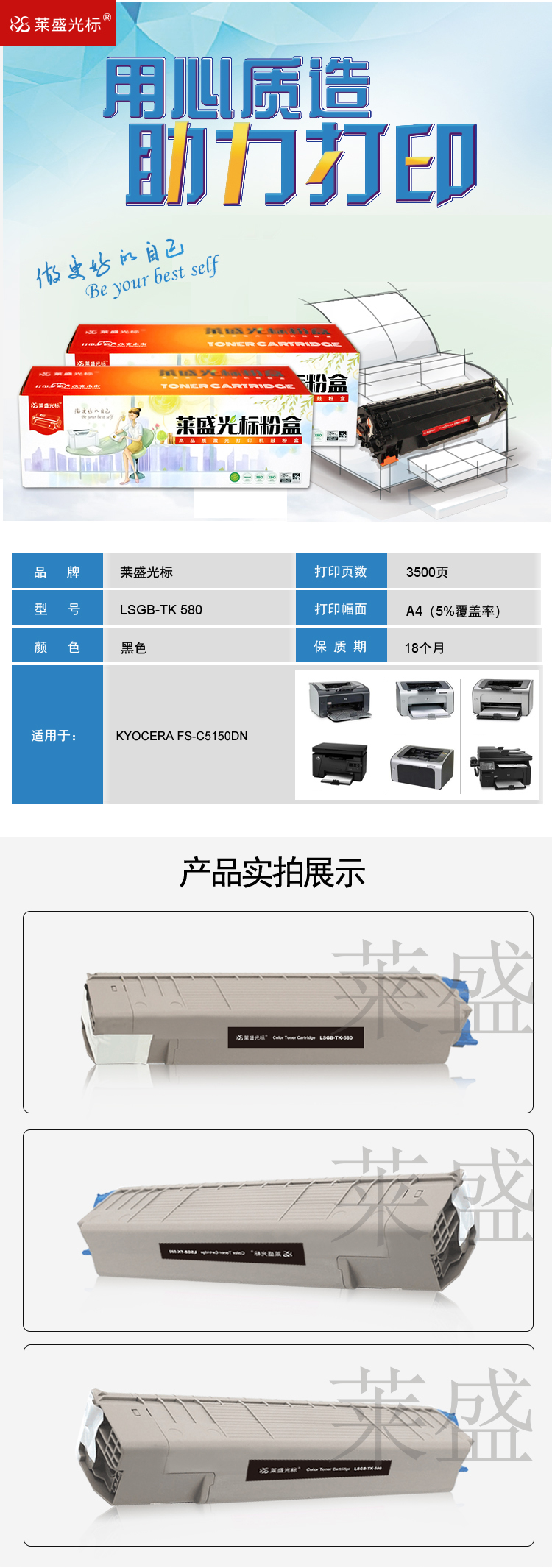 萊盛光標(biāo) LSGB-TK-580 黑色粉盒 適用:KYOCERA FS-C5150DN 單位:支