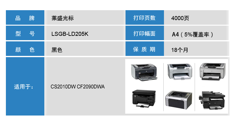 萊盛光標(biāo) LSGB-LD205BK 黑色硒鼓 適用:聯(lián)想 CS2010DW CF2090DWA 單位:支