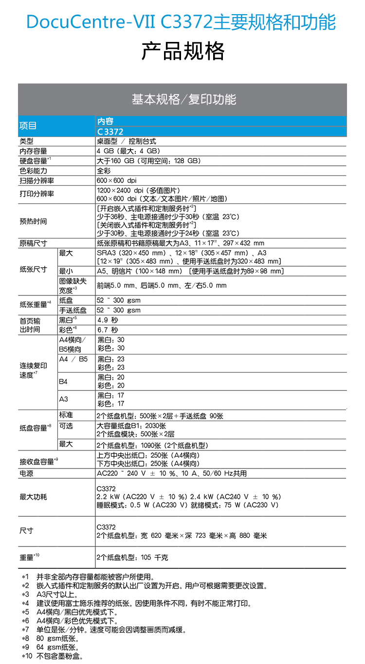富士施樂(lè)復(fù)印機(jī) DocuCentre-VII C3372 CPS 2Tray 彩色復(fù)印機(jī) 單位:臺(tái)