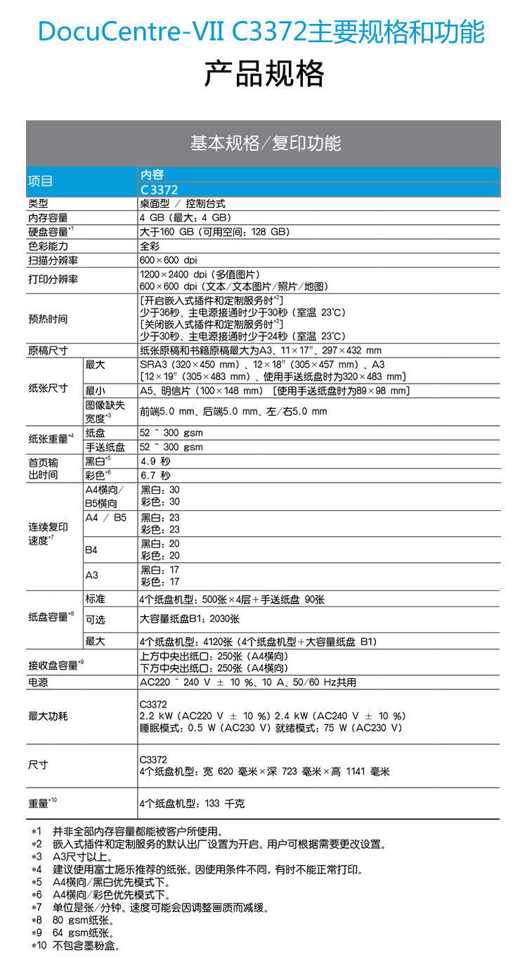 富士施樂(lè)復(fù)印機(jī) DocuCentre-VII C3372 CPS 4Tray 彩色復(fù)印機(jī) 單位:臺(tái)