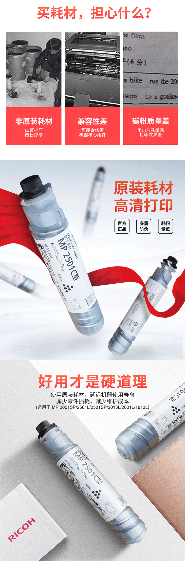 理光墨粉 MP2501C 黑色 適用MP 1813L/2013L/2001L/2501L/2001SP/2501SP 單位:支