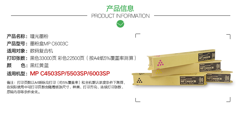 理光墨粉 MPC6003C 青色 適用MP C4503SP/5503SP/6003SP 單位:支
