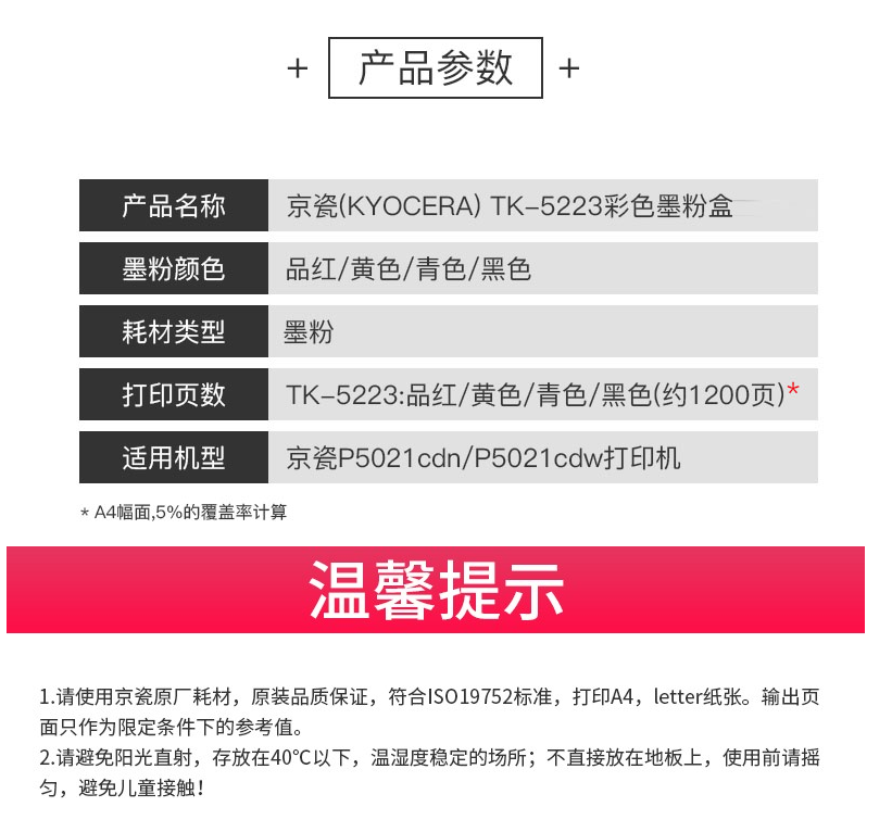 京瓷墨粉 TK-5223 紅色墨粉 適用:P5021cdn/P5021cdw 單位:支