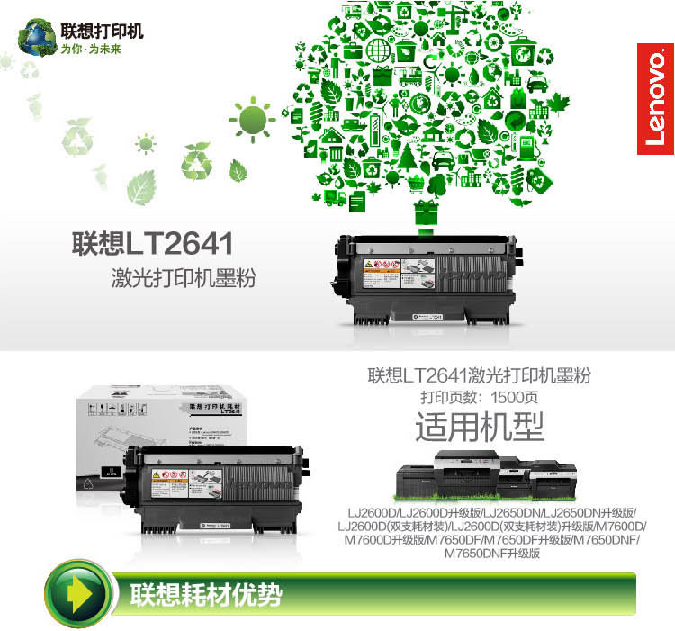 聯(lián)想LD2641 黑色硒鼓 適用于LJ2600D 2650DN M7600 M7600D M7650DF M7650DNF打印機(jī)