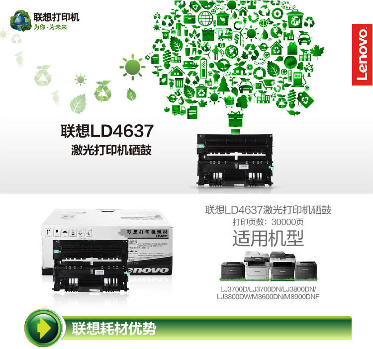 聯(lián)想LD4637 黑色硒鼓 適用LJ3700D/LJ3700DN/LJ3800DN/LJ3800DW/M8600DN/M8900DNF