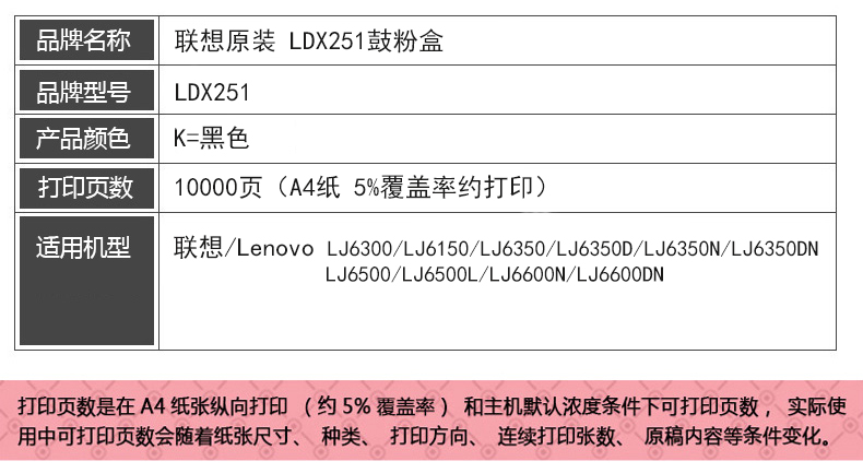 聯(lián)想硒鼓 LDX251 黑色 適用聯(lián)想LJ6500;LJ6600系列打印機(jī) 單位:支