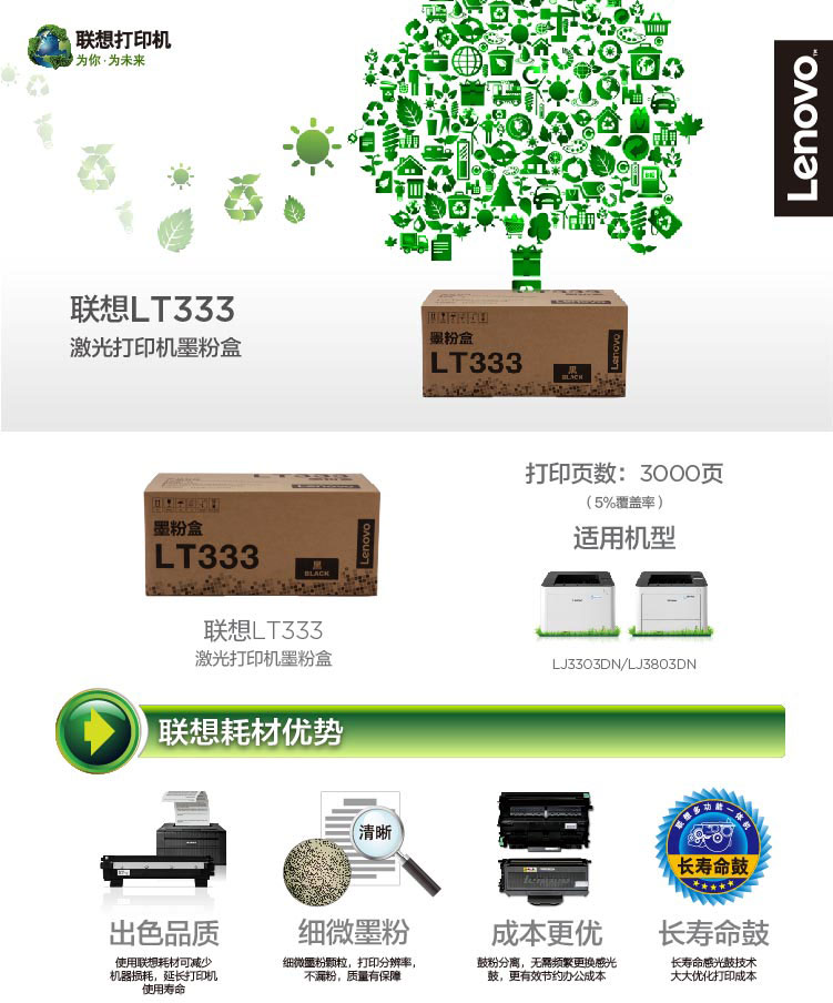 聯(lián)想粉盒 LT333 黑色 適用LJ3303DN LJ3803DN打印機 單位:支