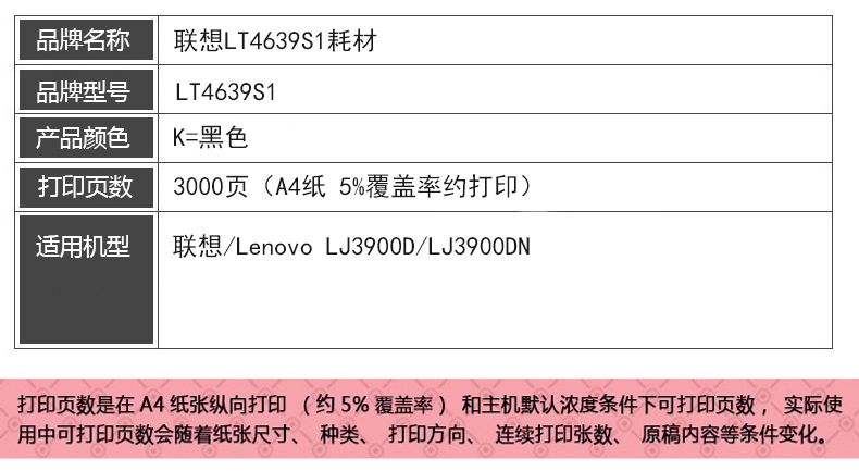 聯(lián)想粉盒 LT4639S1 墨盒 適用LJ3900D LJ3900DN 打印機(jī) 單位:支