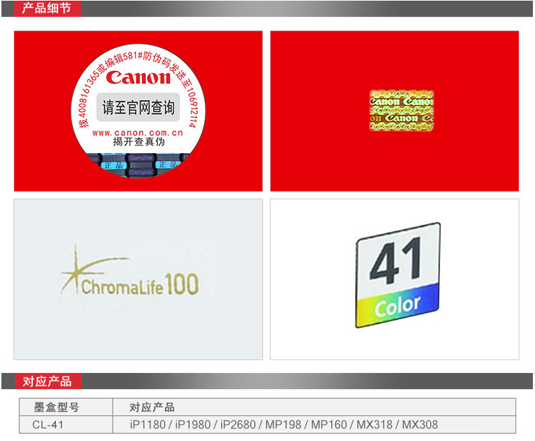 佳能墨盒 CL-41 彩色墨盒 適用:iP1180、iP1980、iP2680、MP198 單位:支
