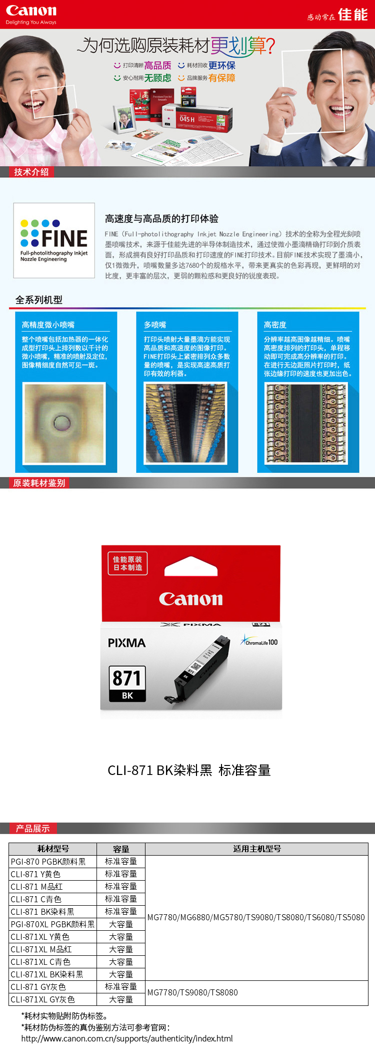 佳能墨盒 CLI-871XL 黑色墨盒 適用:MG7780、TS9080、TS8080、TS6080 單位:支