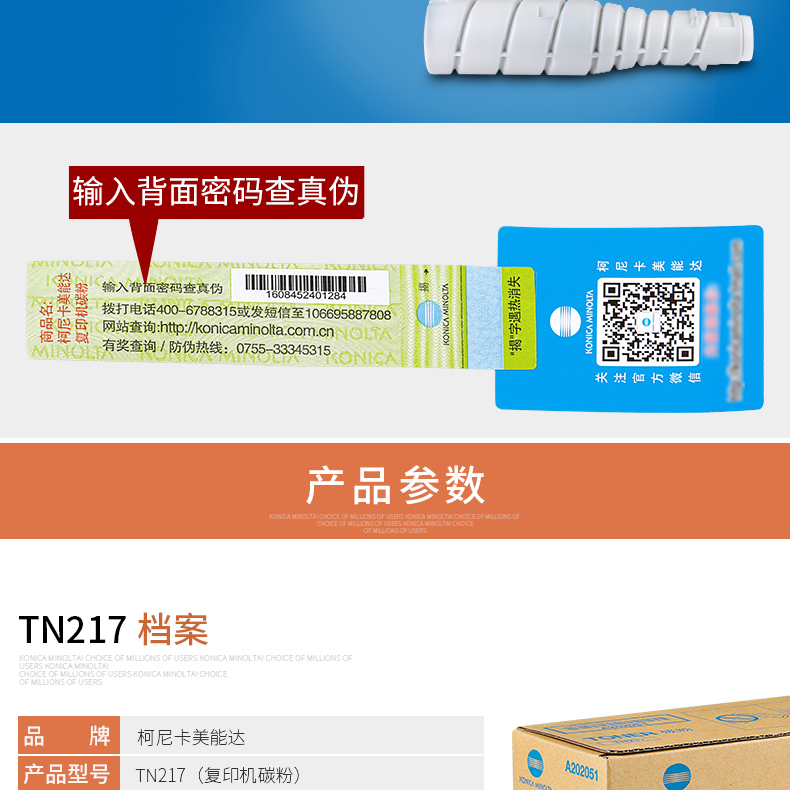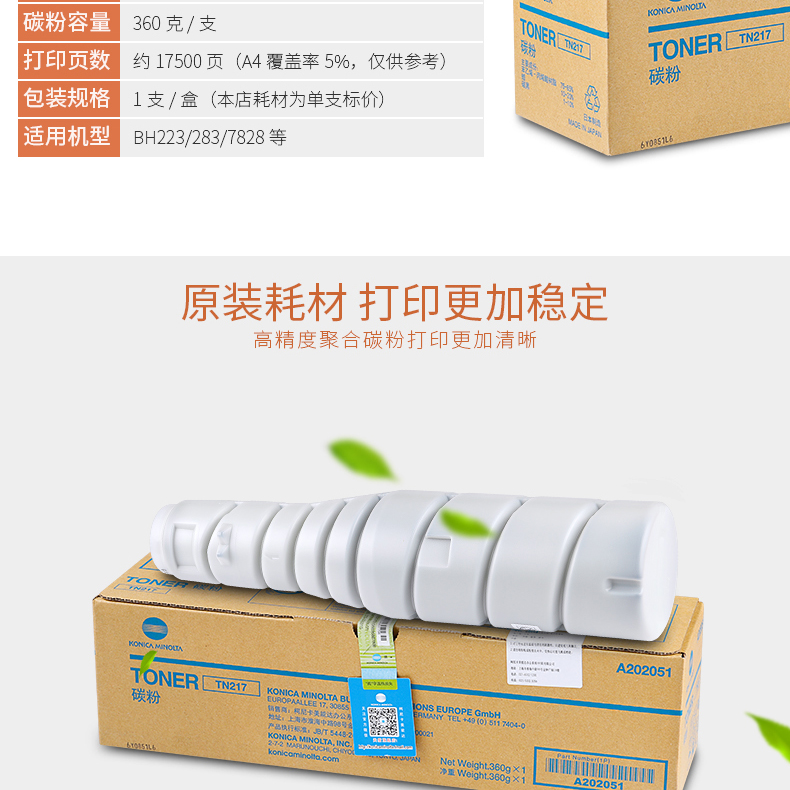 柯尼卡美能達(dá) TN217 黑色碳粉 適用223/283/7828 打印17500頁 單位:支