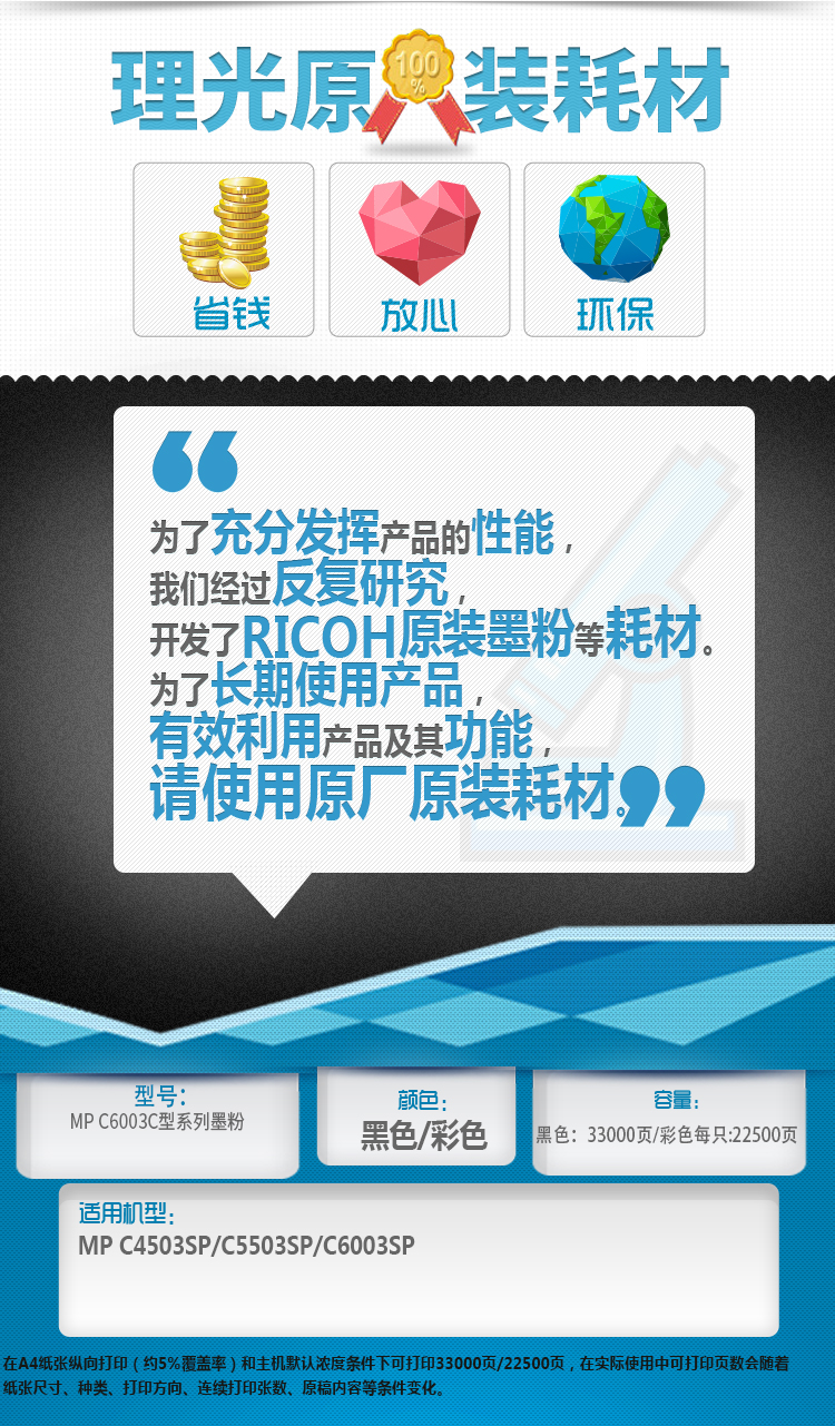 理光墨粉 MPC6003C 黃色 適用MPC4503SP/5503SP/6003SP 單位:支