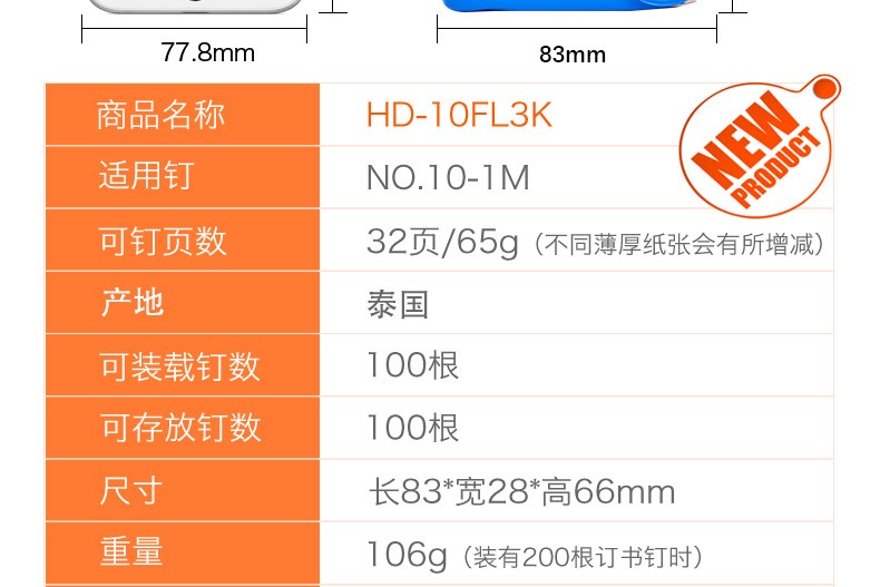 美克司 訂書(shū)機(jī)HD-10FL3K 單位:個(gè)