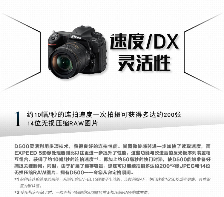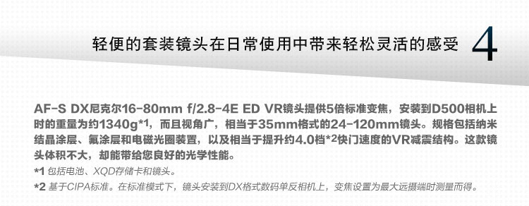 尼康單反 D500(AF-S DX 尼克爾 16-80MM F2.8-4E ED VR 鏡頭)單反套機(jī) 單位:套