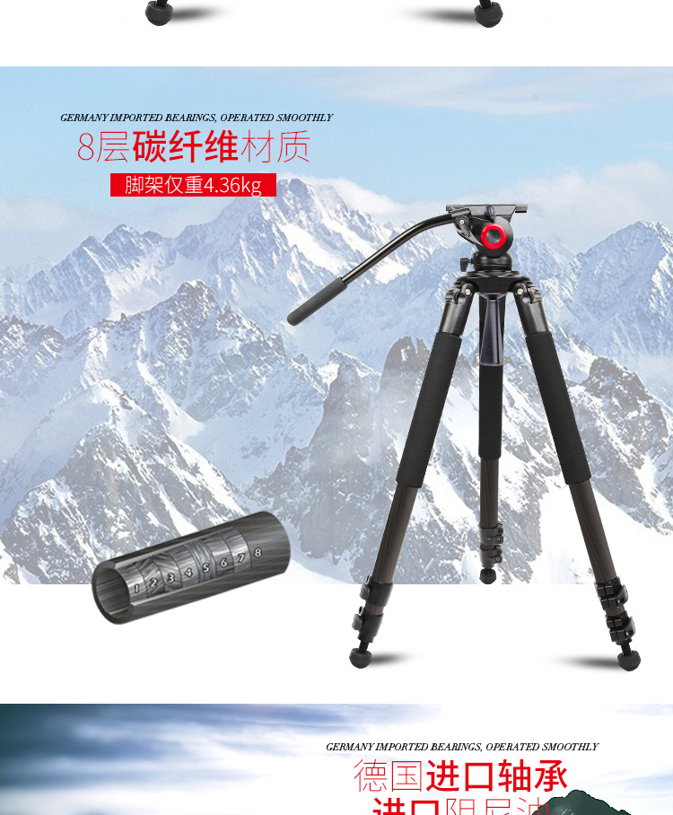 米泊鐵塔攝像機(jī)三腳架 碳纖維專業(yè)攝影大三角架 單位:套