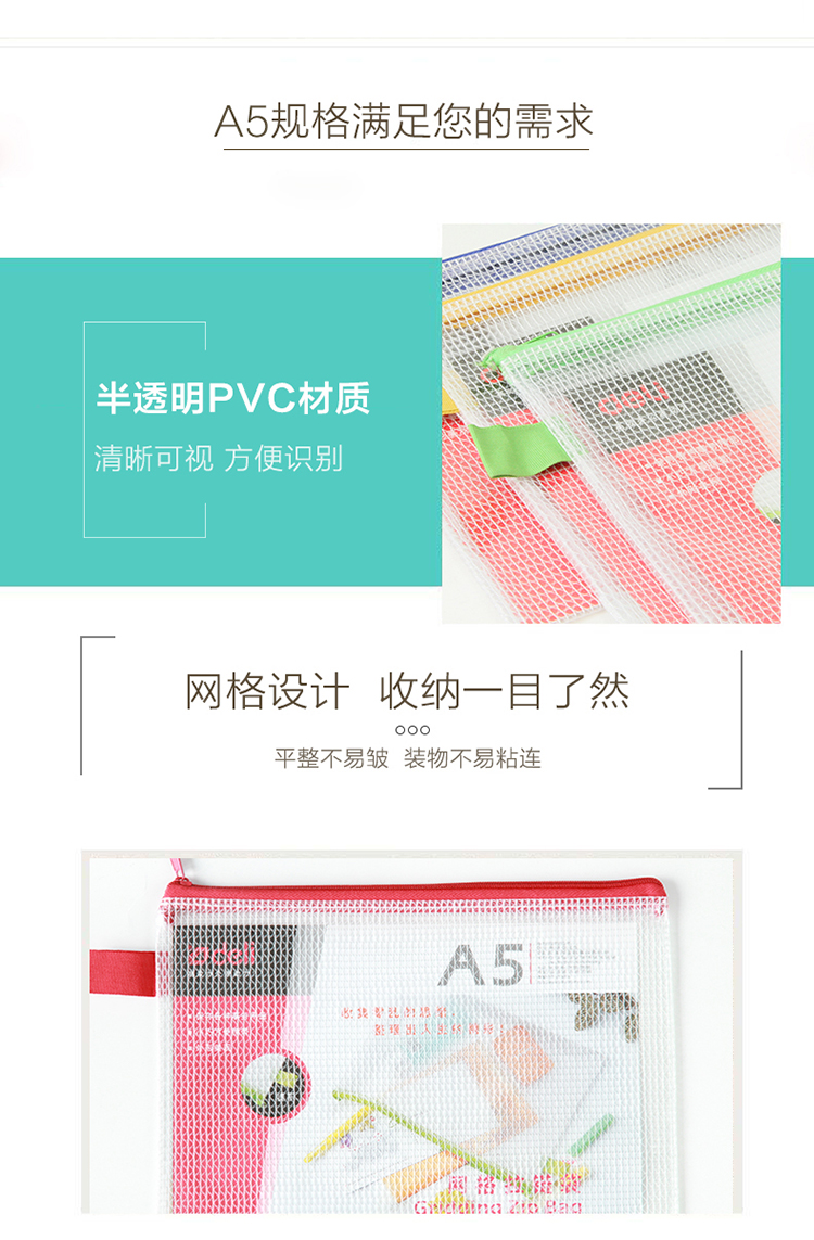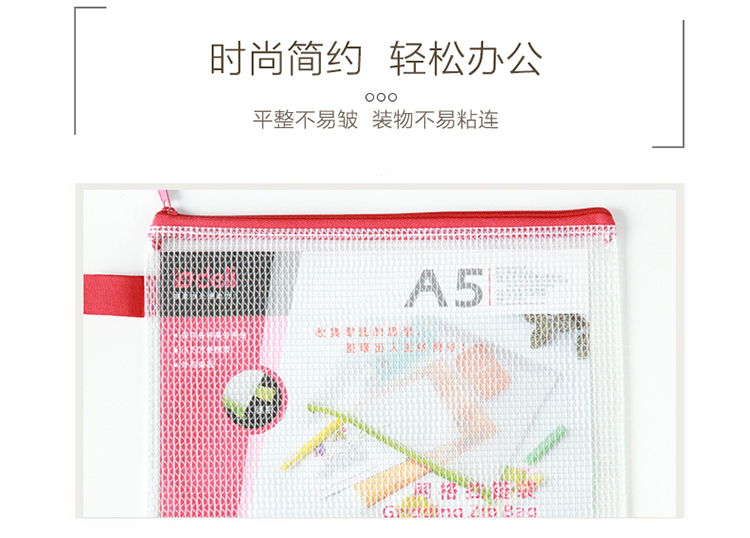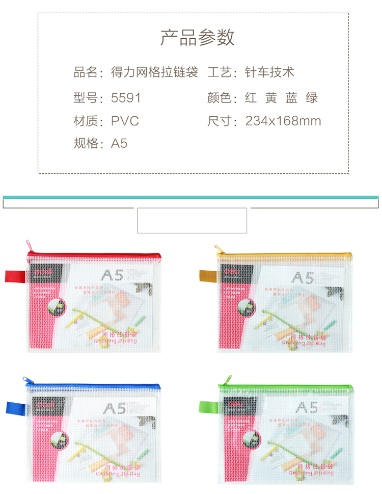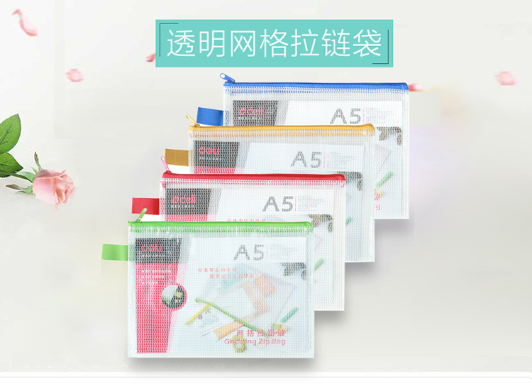 商品名稱:得力5591 A5彩色拉鏈網(wǎng)格拉鏈袋/資料袋/文件袋