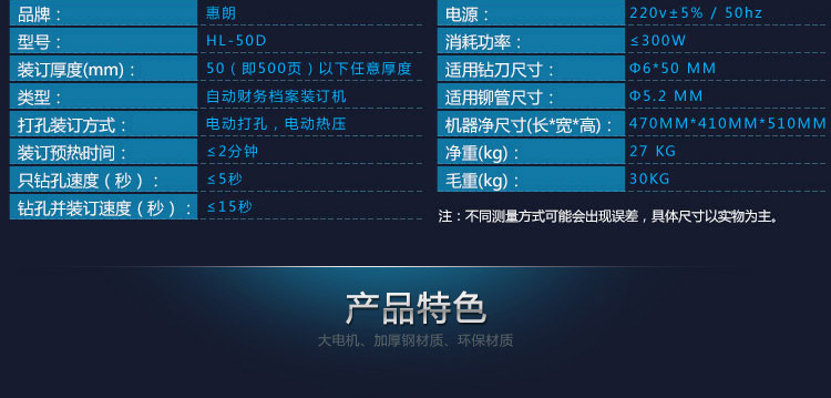 惠朗裝訂機 自動財務(wù)檔案HL-50D裝訂機 單位:臺