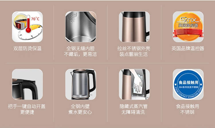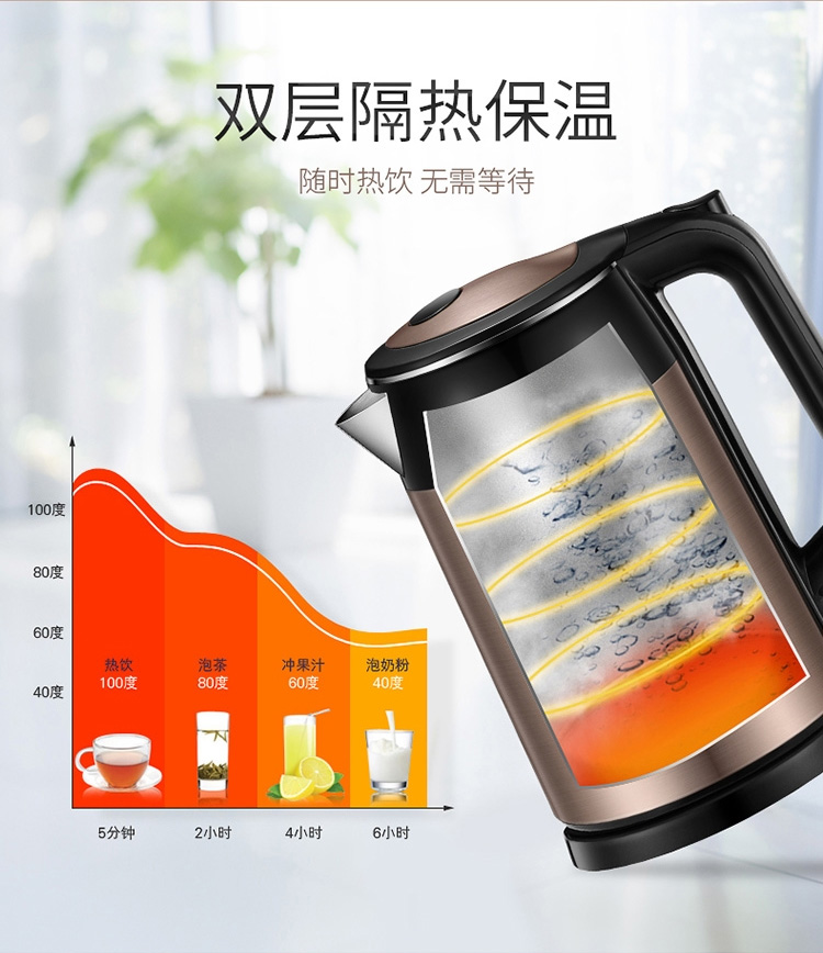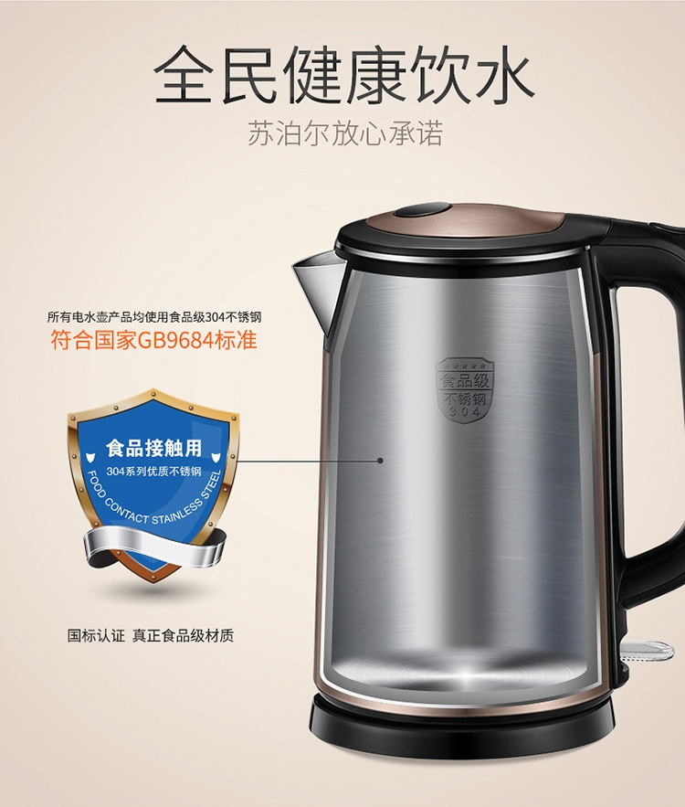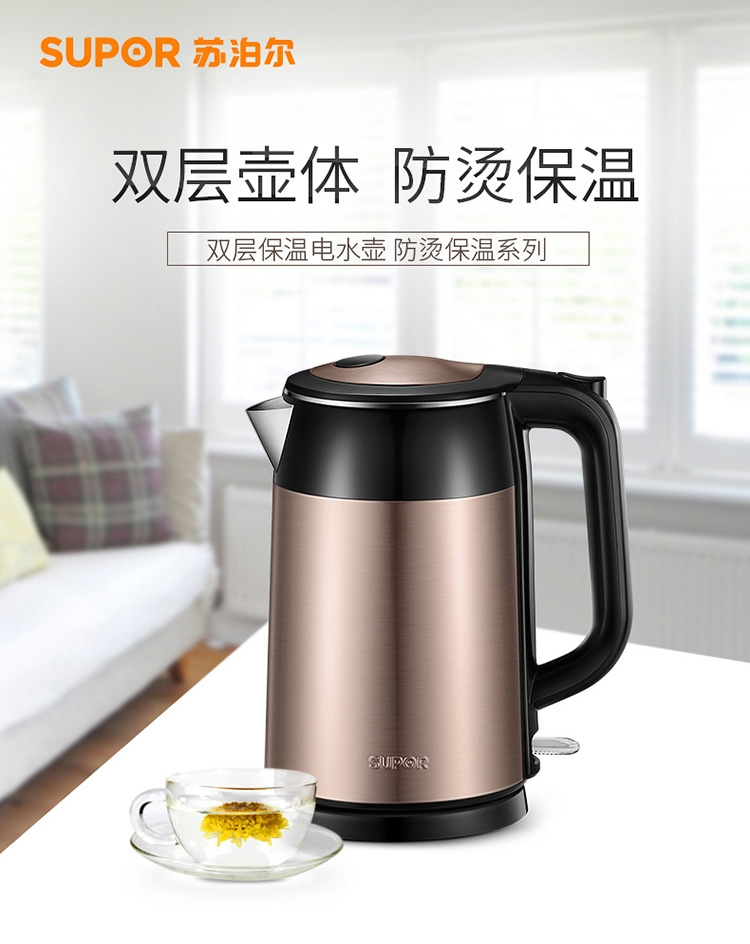 蘇泊爾熱水壺 SWF17S26A 雙層保溫不銹鋼電水壺 1.7L 單位:個(gè)