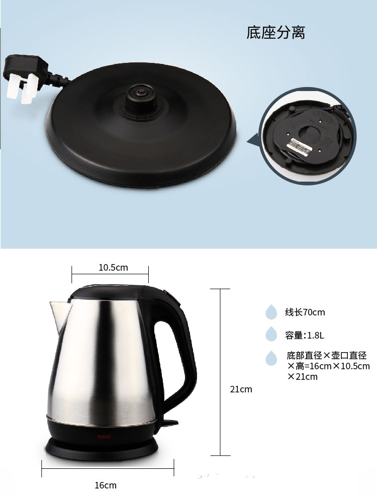 得力熱水壺 0764 1.8L不銹鋼自動斷電熱水壺 單位:個
