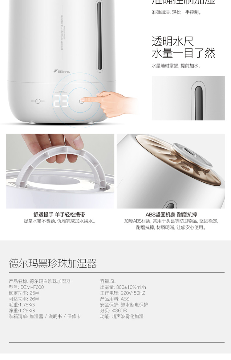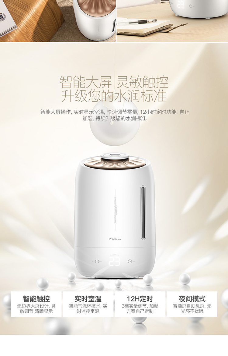 5L大容量 觸控感溫 家用靜音迷你辦公室臥室香薰加濕 DEM-F600(珍珠白)
