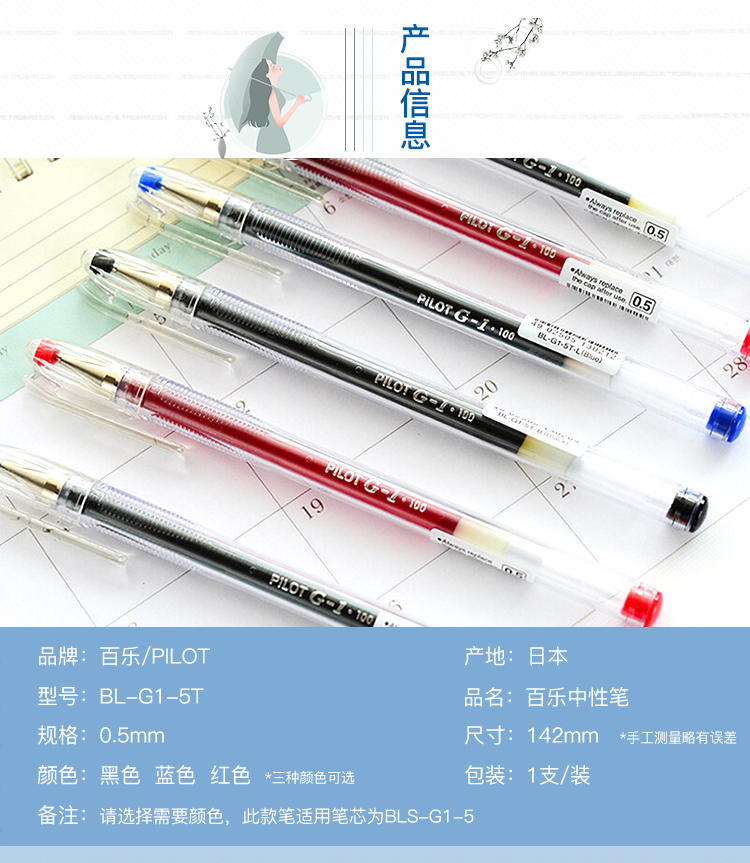 百樂 BL-G1-5T 0.5mm 走珠筆簽字筆 藍色 單支裝