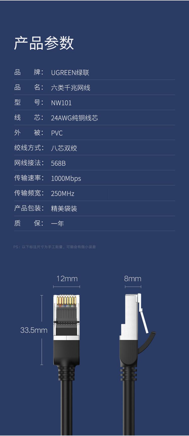 綠聯(lián)網(wǎng)線 NW101 CAT6類純銅八芯雙絞非屏蔽千兆高速網(wǎng)絡(luò)跳線 3米 單位:根