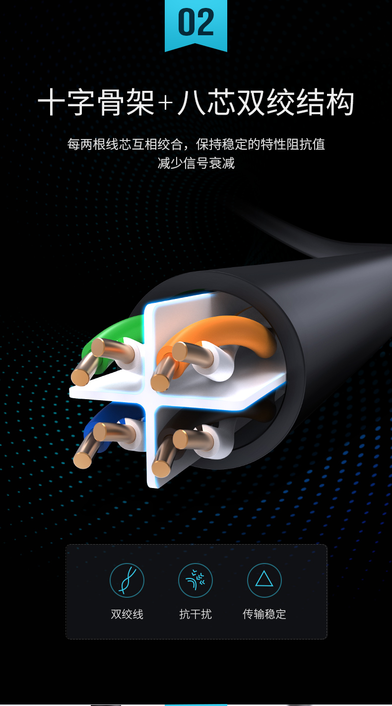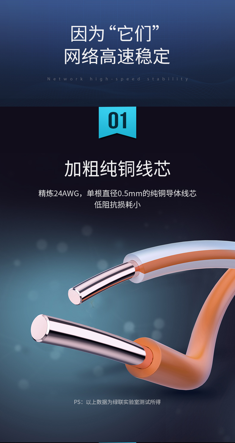 綠聯(lián)網(wǎng)線 NW101 CAT6類(lèi)純銅八芯雙絞非屏蔽千兆高速網(wǎng)絡(luò)跳線 20米 單位:根