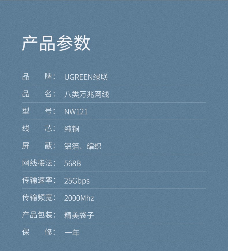綠聯(lián)網(wǎng)線 NW121 游戲電競版CAT8類八芯雙絞純銅鍍金雙屏蔽高速萬兆網(wǎng)絡跳線 5米 單位:根