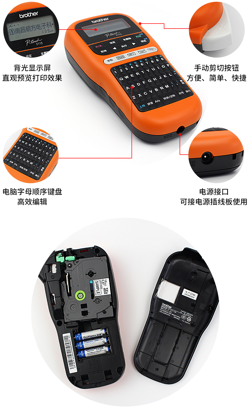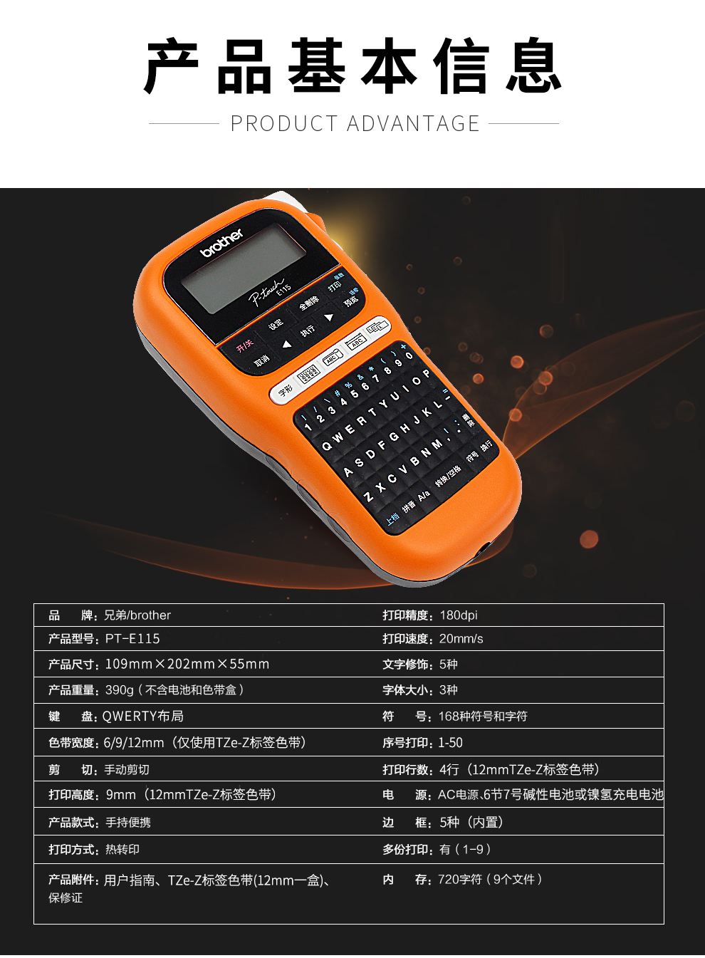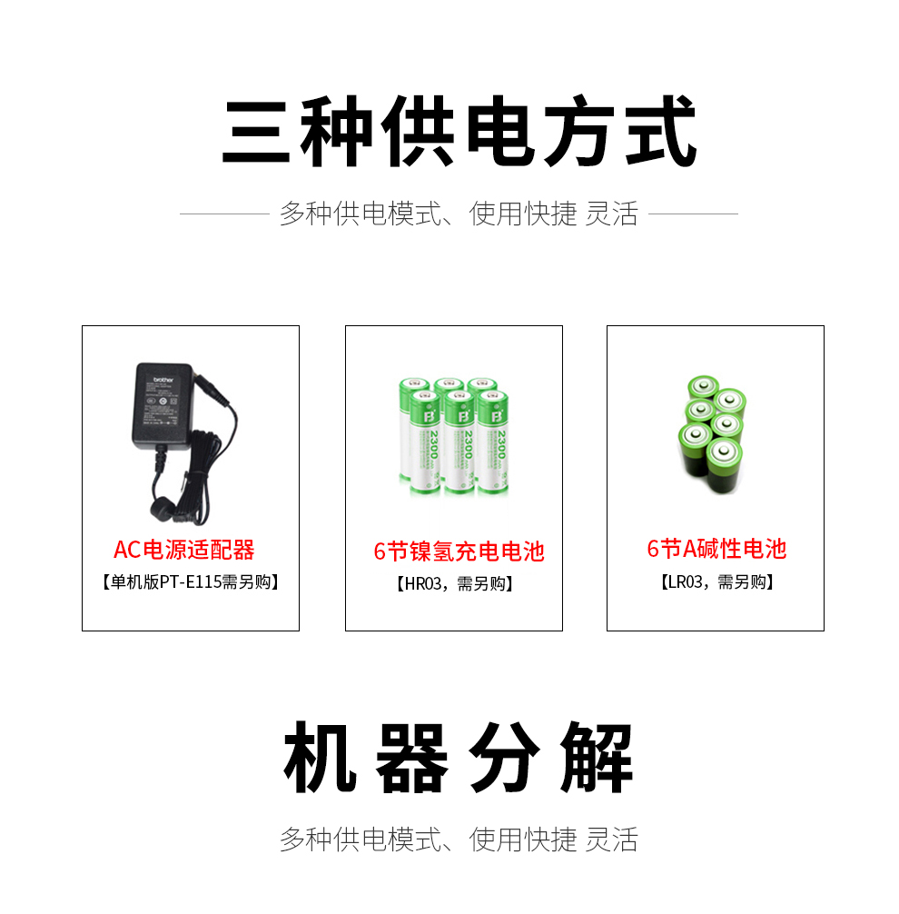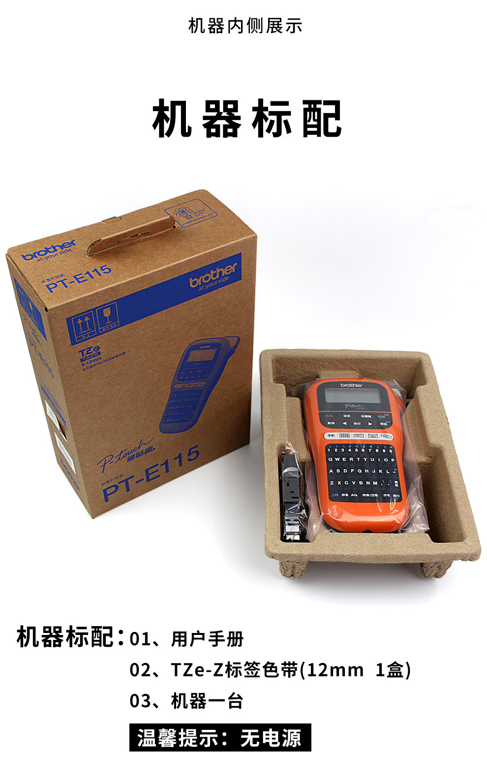 兄弟標(biāo)簽打印機(jī) PT-E115 線纜手持12mm布線便攜式標(biāo)簽打印機(jī) 單位:臺(tái)