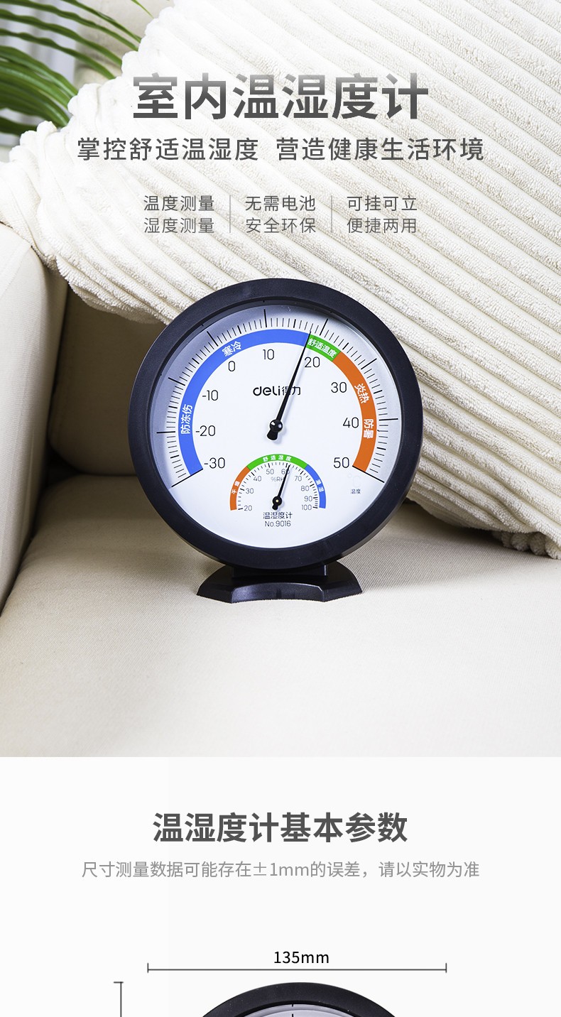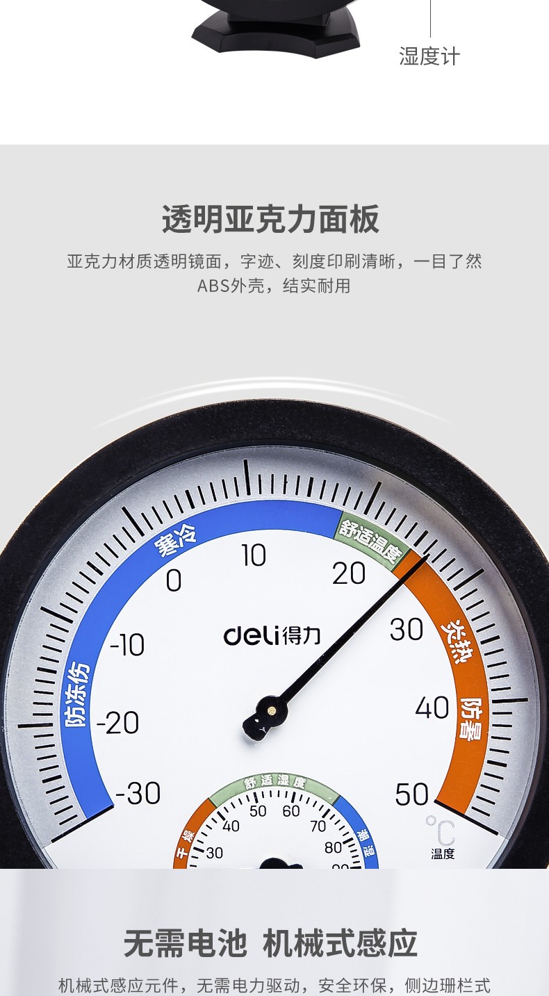 得力(deli)9016 室內(nèi)外溫濕度計家用溫度計可懸掛可擺放有底座溫度計顏色隨機