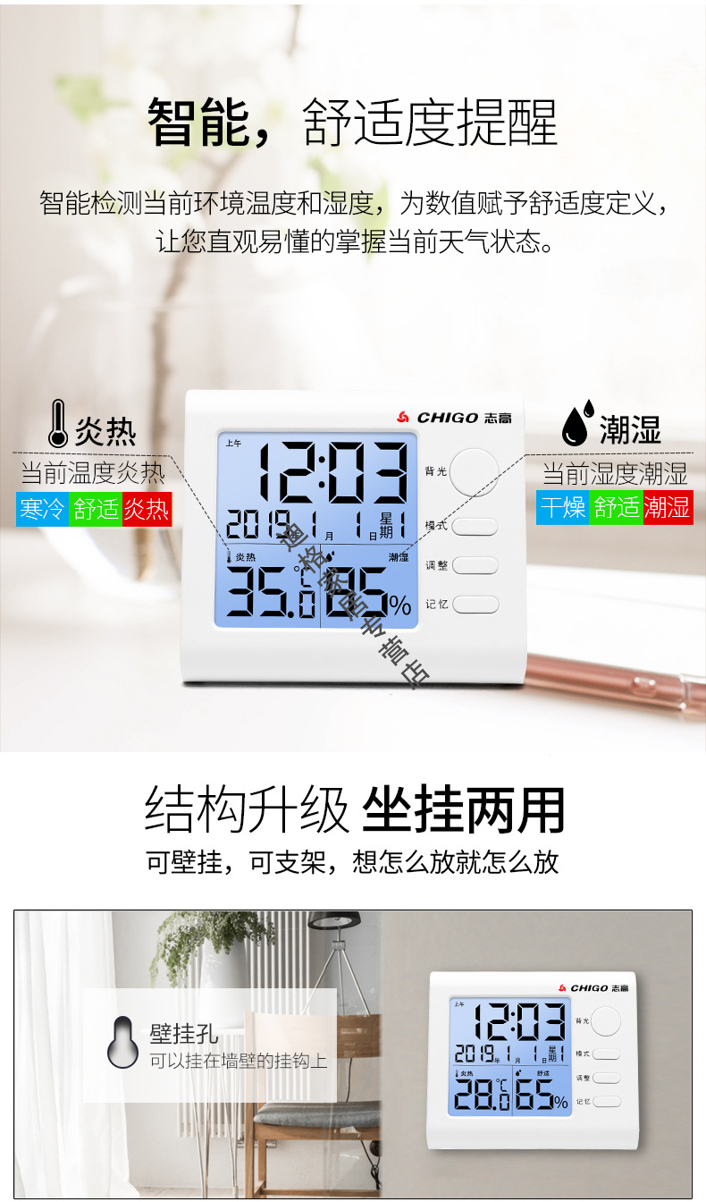 志高溫濕度計(jì) ZG-8012 室內(nèi)高精度溫濕度計(jì)燈光版 單位:個(gè)
