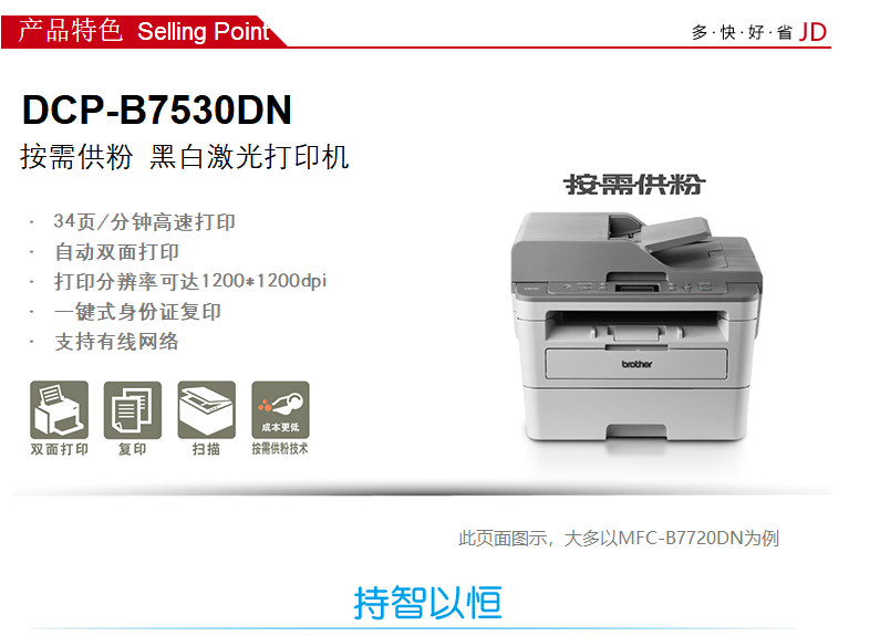 兄弟多功能一體機 DCP-B7530DN 按需供粉系列 黑白激光 (打印 復(fù)印 掃描 雙面打印 有線網(wǎng)絡(luò))單位:臺