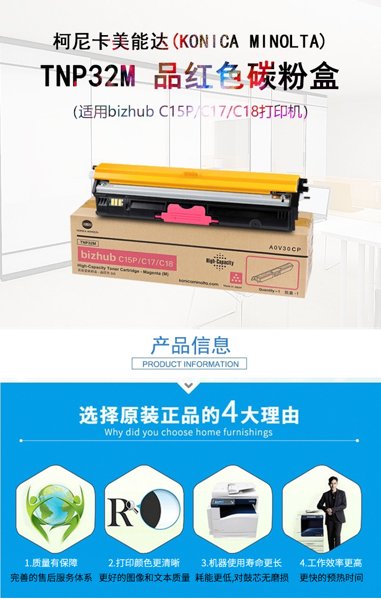 柯尼卡美能達(dá) TNP32 紅色碳粉 適用bizhub C15P/C17/C18打印機(jī) 單位:支
