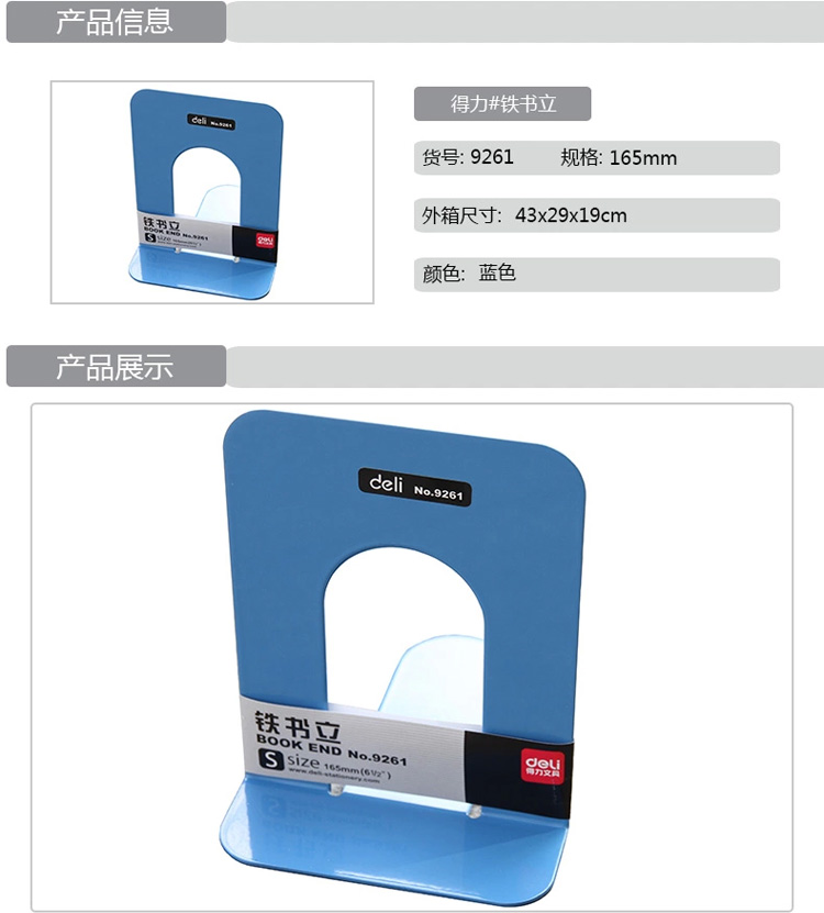 商品名稱:得力9261鐵書立 鐵書架 辦公書立 辦公用品 書欄 小號(hào) 1對(duì)