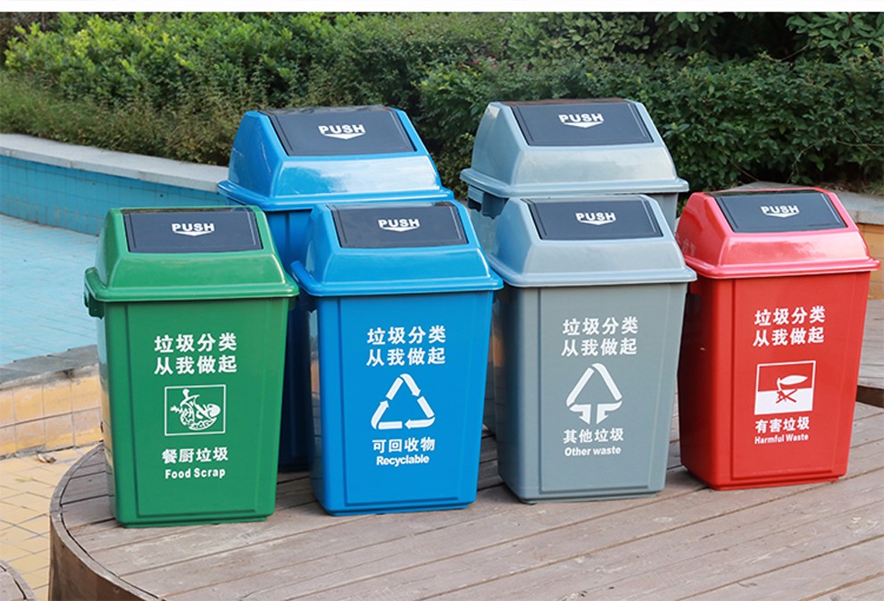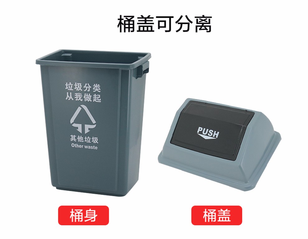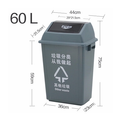 科靈 60L搖蓋 灰色 其他垃圾分類垃圾桶帶蓋 飯店餐飲可回收廚余環(huán)衛(wèi)有害戶外四分類 單個裝