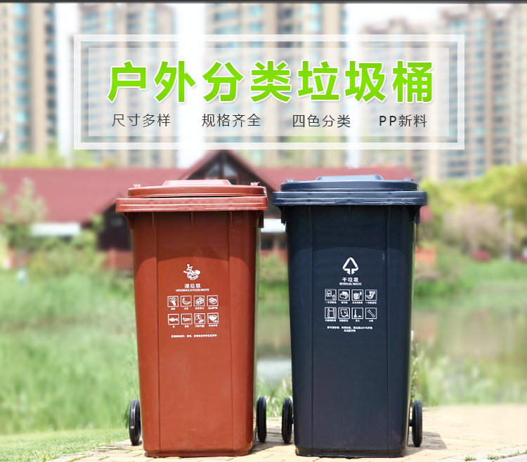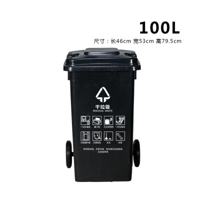 ABEPC 100L帶輪 黑色 干垃圾桶 物業(yè)環(huán)衛(wèi)垃圾分類商用帶蓋分類垃圾桶果皮箱 單個裝