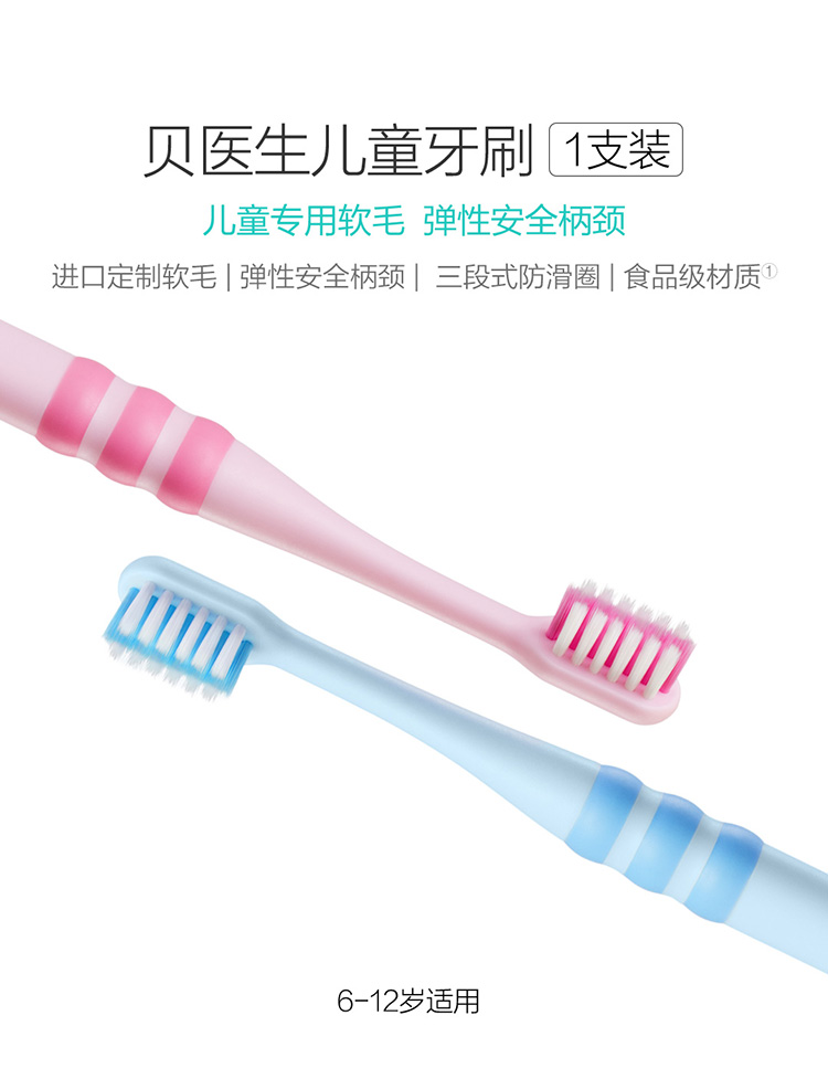 貝醫(yī)生兒童牙刷 柔軟細(xì)軟毛兒童訓(xùn)練牙刷單支裝 6-12歲 藍(lán)色 單位:支