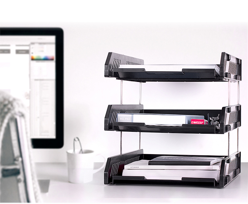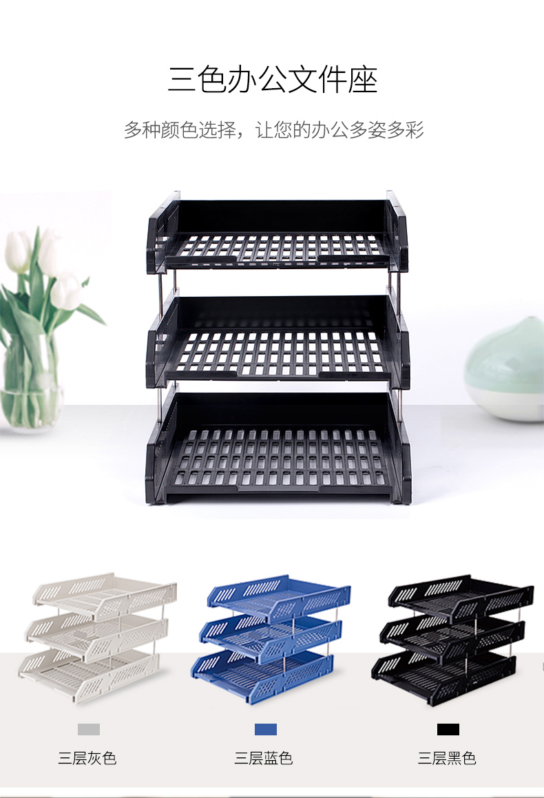 得力文件盤 9209 三層塑料橫式文件框 灰色 單位:個