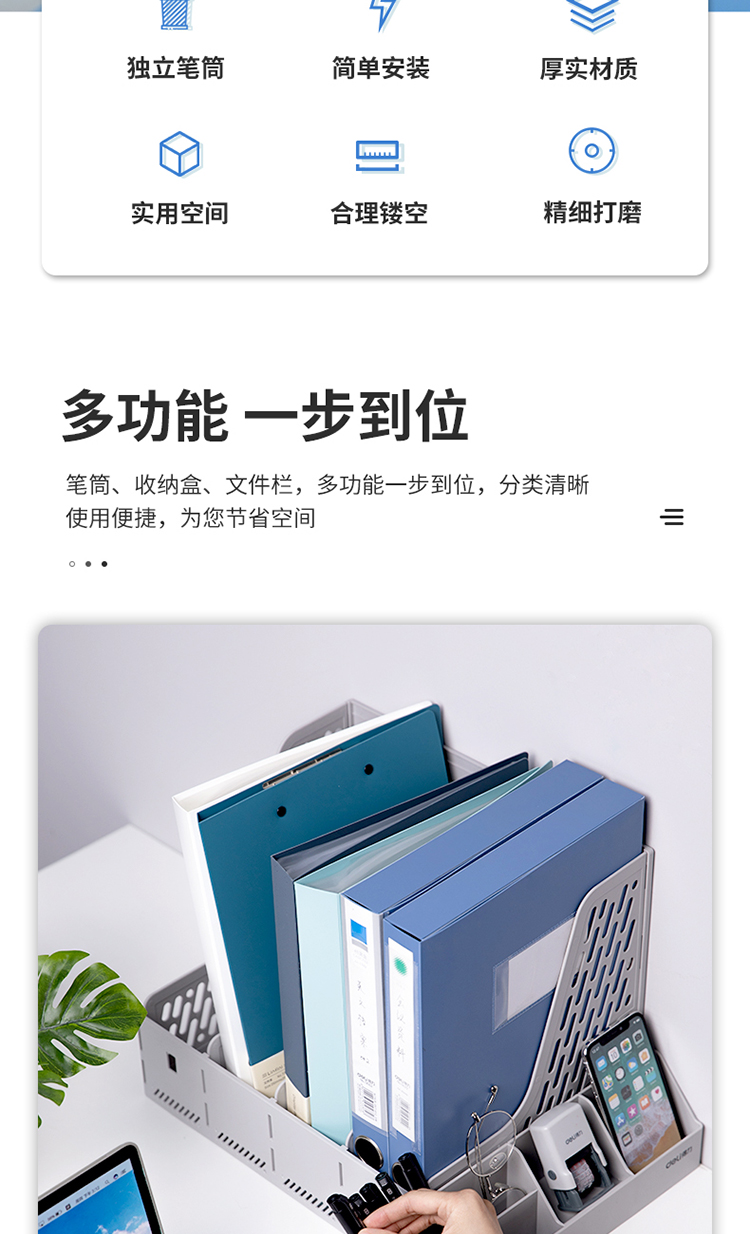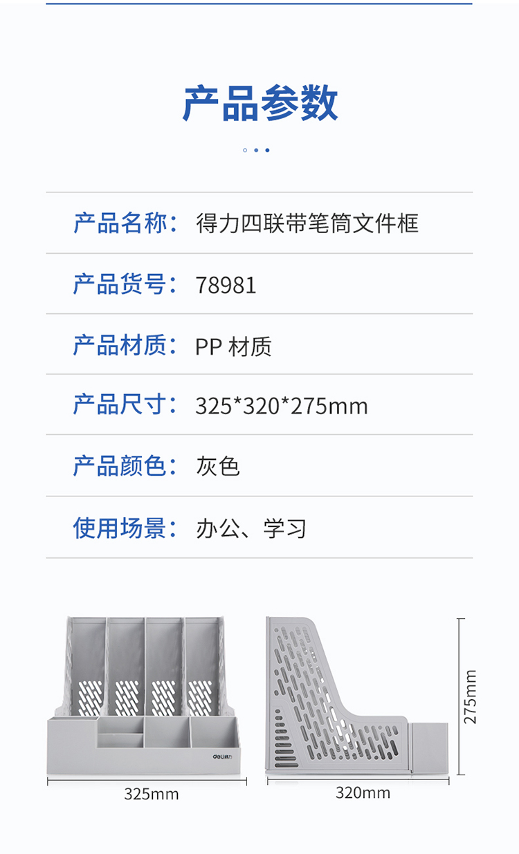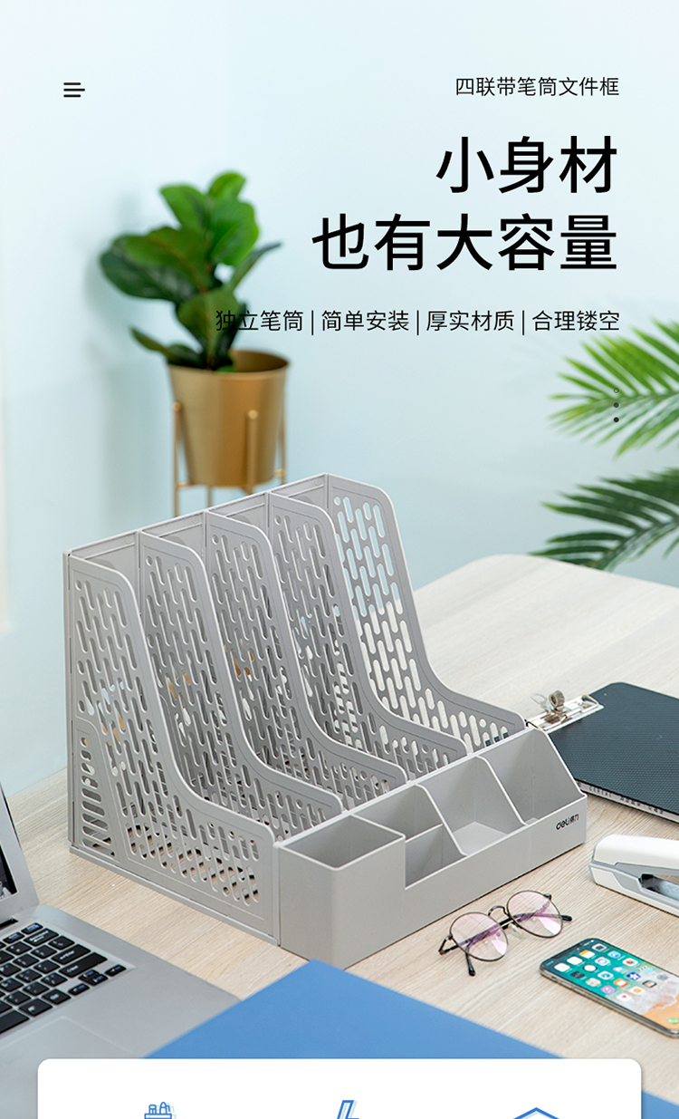 得力資料筐 78981 四聯(lián)帶筆筒文件框多功能資料筐 灰色 單位:個