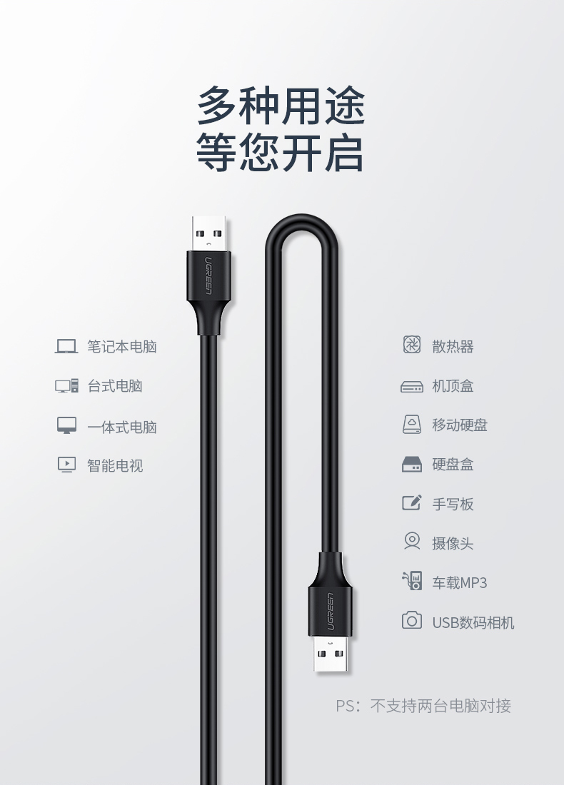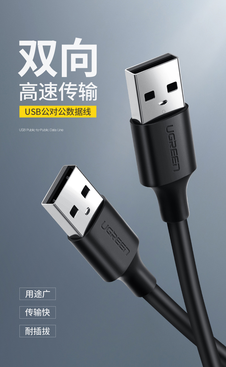 綠聯(lián) US102 USB2.0數(shù)據(jù)線公對(duì)公 雙頭移動(dòng)硬盤盒高速傳輸連接線 1米 黑色 單位:根