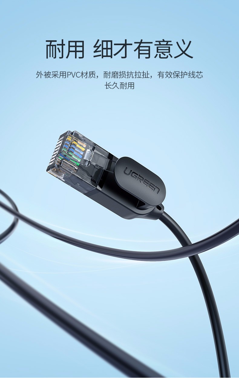 綠聯(lián)網(wǎng)線 NW122 超六類萬兆網(wǎng)線細(xì)線 CAT6A類純銅鍍金八芯雙絞非屏蔽網(wǎng)絡(luò)跳線 10米 單位:根