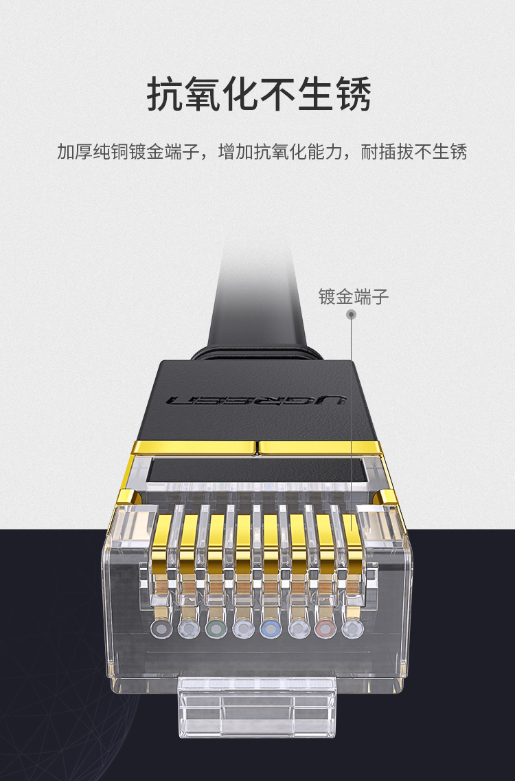 綠聯(lián)網(wǎng)線 NW106 工程級(jí)Cat7七類屏蔽雙絞線純銅扁平網(wǎng)線萬兆網(wǎng)絡(luò)跳線 8米 單位:根