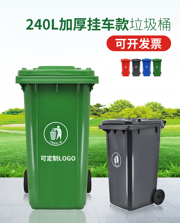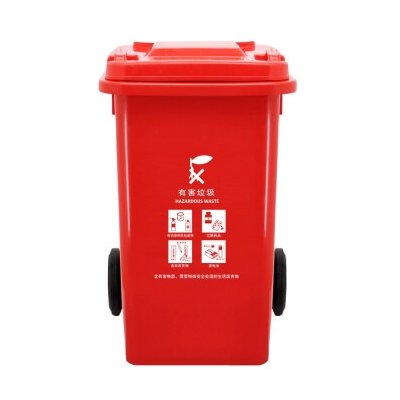 蘭詩 240L可掛車帶輪 紅色 有害垃圾桶 物業(yè)環(huán)衛(wèi)垃圾分類商用帶蓋分類垃圾桶果皮箱 單個裝