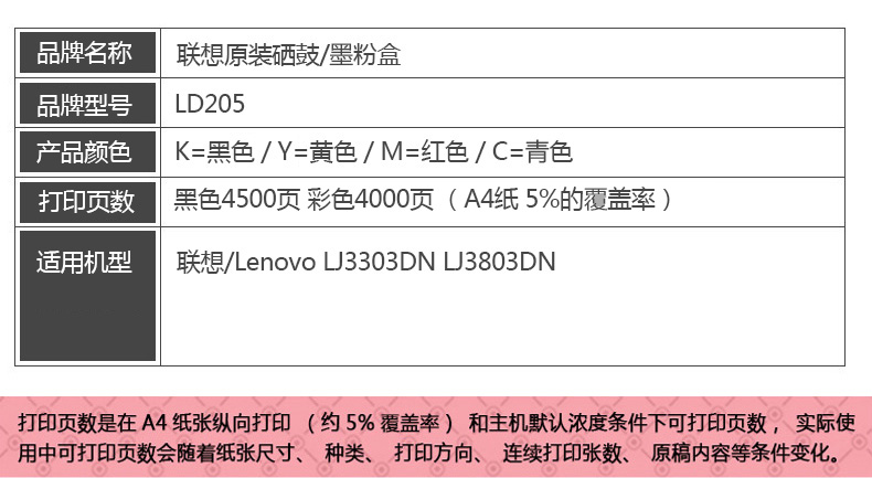 聯(lián)想硒鼓 LD205 青色 適用于CS2010DW/CF2090DWA打印機 單位:支