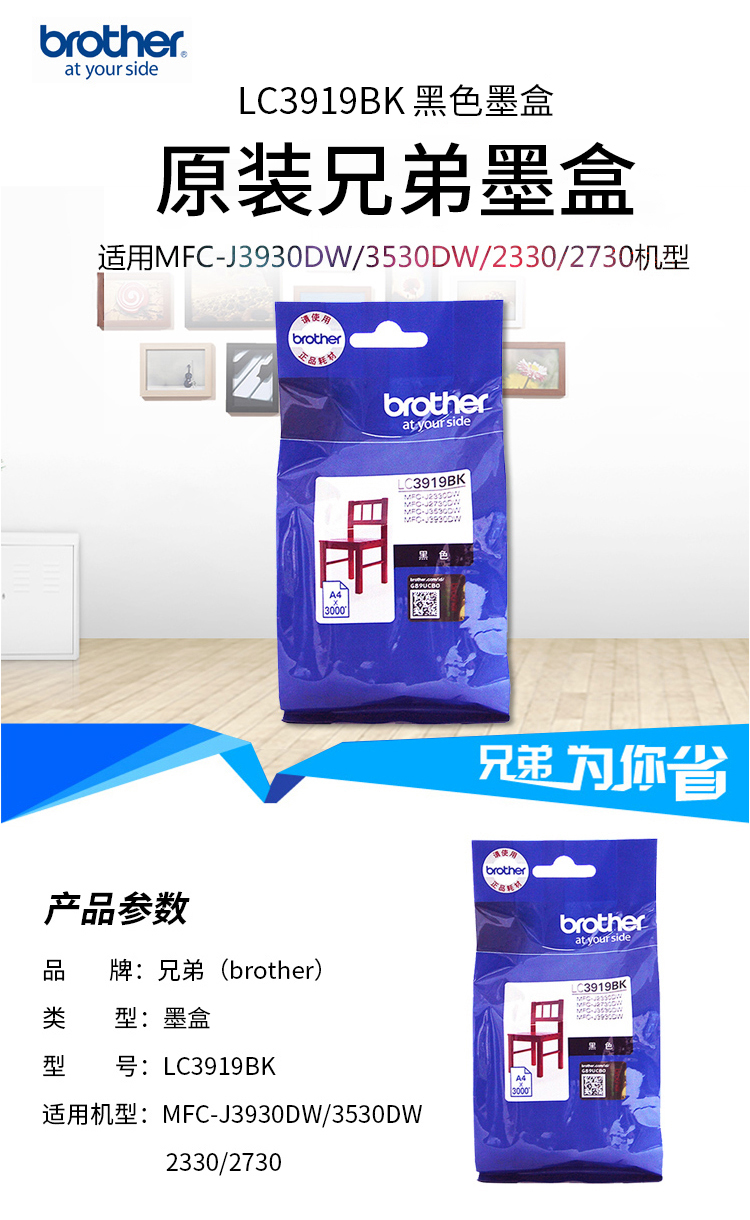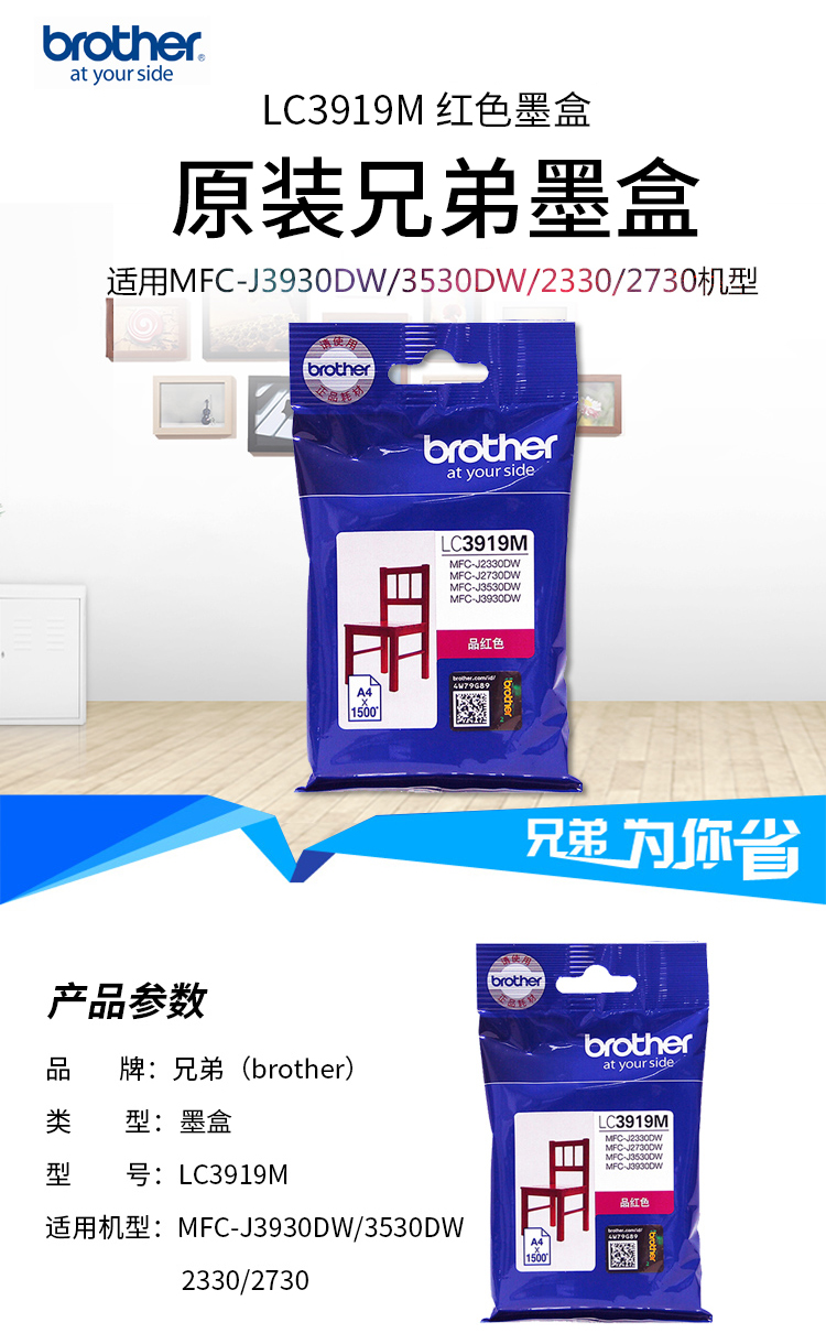 兄弟墨盒 LC3919 黃色墨盒 適用:MFC-J3930DW/3530DW/2330/2730機型 單位:支