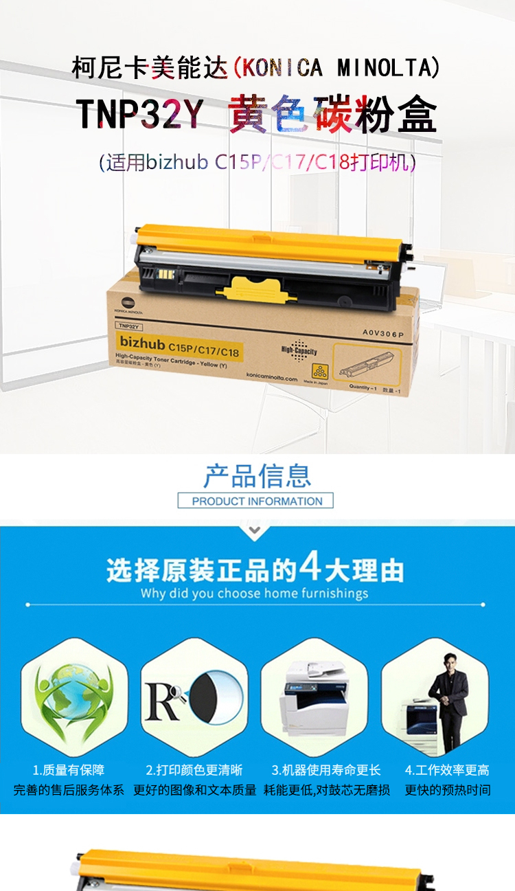 柯尼卡美能達(dá) TNP32 黃色碳粉 適用bizhub C15P/C17/C18打印機(jī) 單位:支