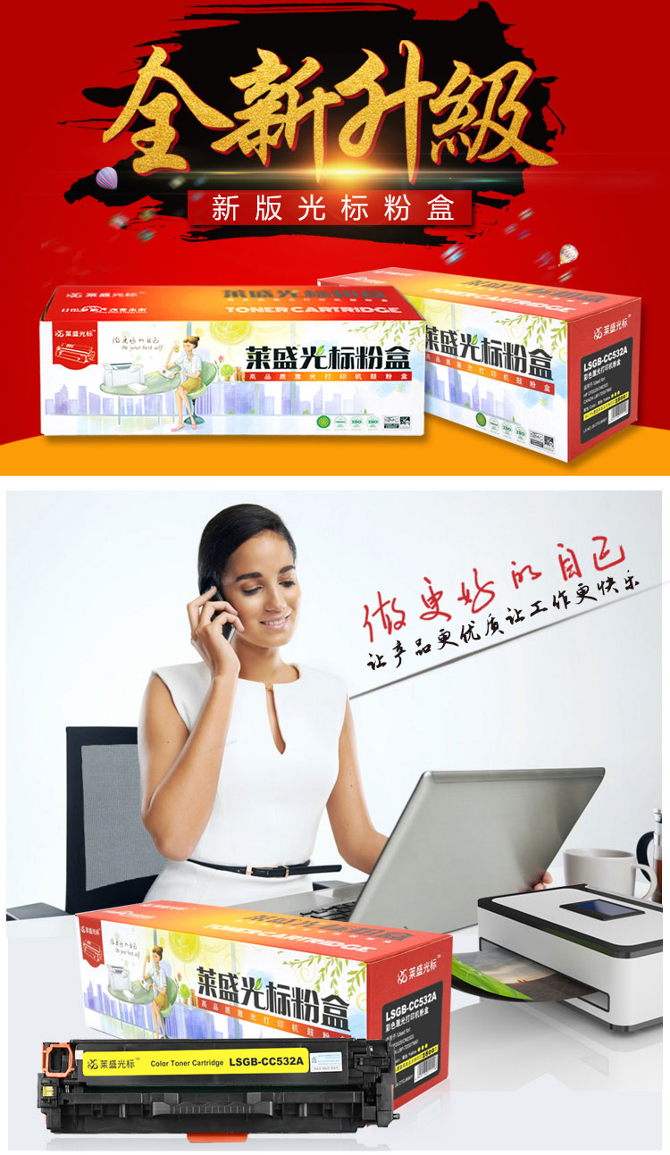 萊盛光標(biāo) LSGB-CC532A 黃色粉盒 適用:HP CP2025/CM2320 CANON LBP-7200/7660 單位:支