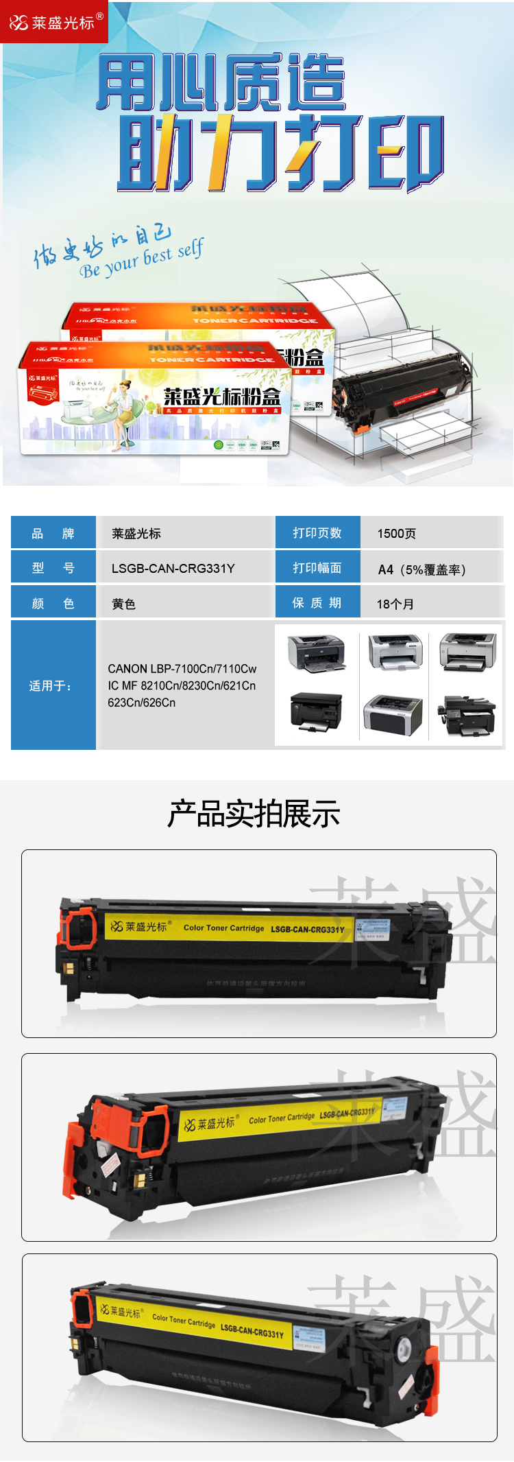 萊盛光標(biāo) LSGB-CAN-CRG331Y 黃色硒鼓 適用:CANON LBP-7100Cn/7110Cw IC MF 單位:支