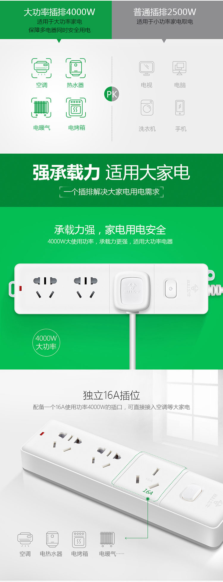 公牛插座 GN-406D 5米插座接線(xiàn)板含16A空調(diào)專(zhuān)用3孔 單位:個(gè)
